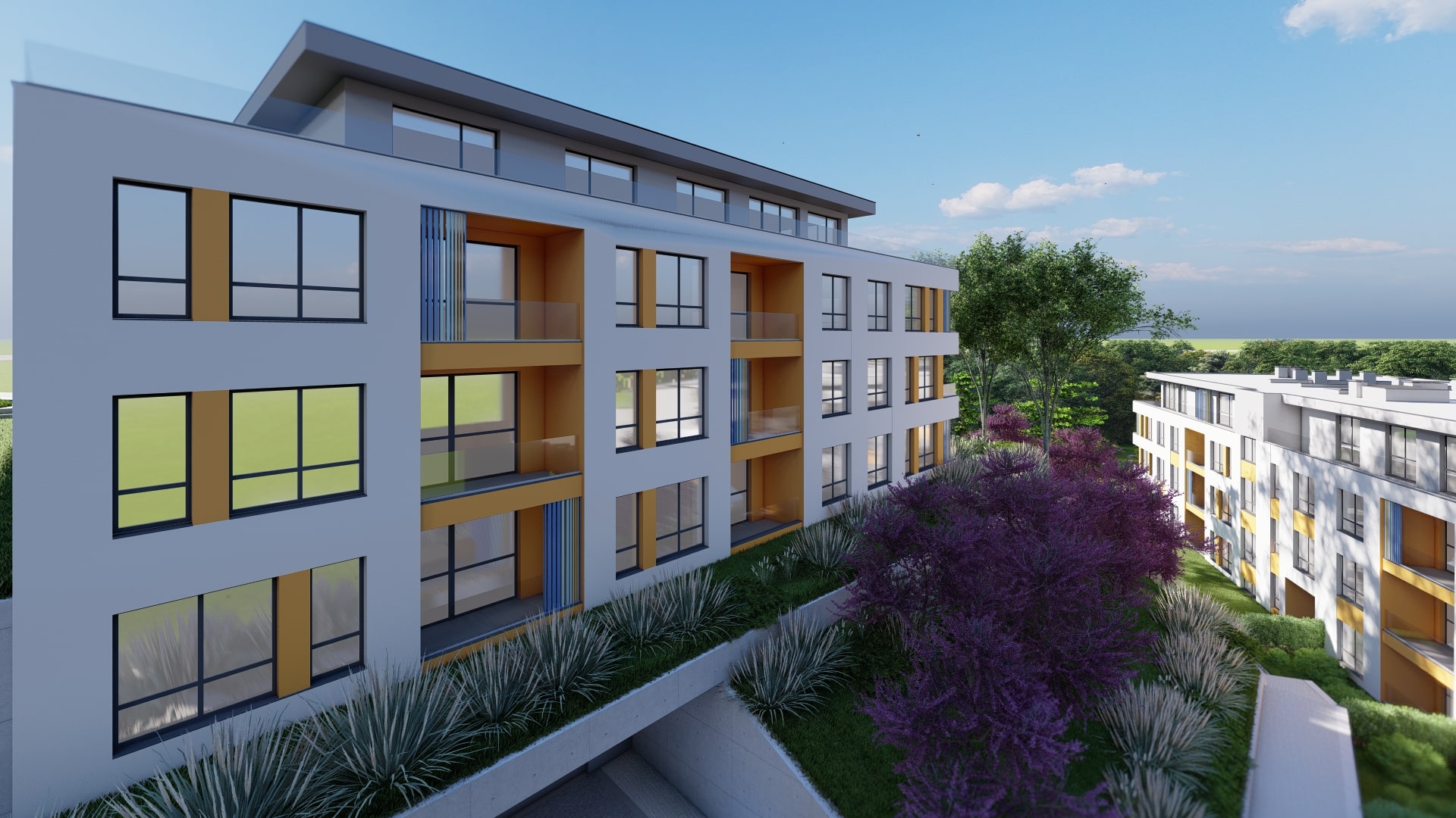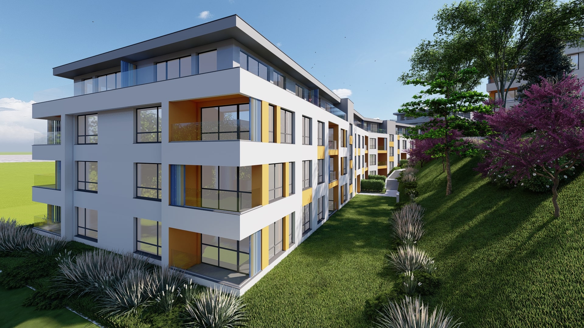 Сградите са разположени каскадно, следвайки естествената денивелация на терена. Това дава възможност жилищата да бъдат максимално осветени и разположени според най-предпочитаните изложения - Юг, Изток и Запад. Френските прозорци и стъклени парапети на балконите допълнително засилват усещането за простор и светлина. Апартаментите са с оптимални квадратури от 75 кв.м. до 170 кв.м. с една, две и три спални, функционални и удобни, с правилни форми на стаите и големи дневни.