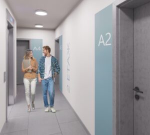 Съвременният дизайн на фасадната обвивка предвижда панорамно интегриране на околната среда в интериора, като същевременно държи сметка за изключително високата енергийна ефективност на сградата. Структурно сградата е разделена на две малки етажни собствености с оглед формирането на по-добър социален консенсус.