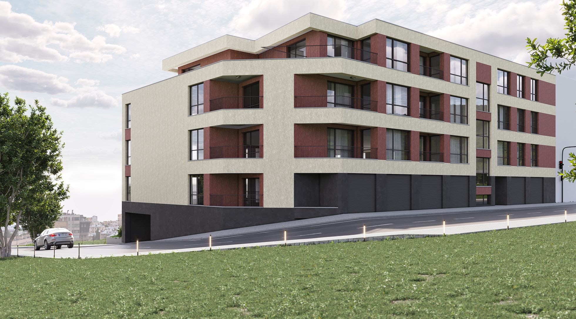 Общите части в сградата ще бъдат с настилка от гранитогрес, окачени тавани от гипсокартон, LED осветление с датчици за движение, парапетите ще са по архитектурен детайл. Предвиден е асансьор обслужващ всички нива, включително полуподземното паркинг ниво.